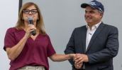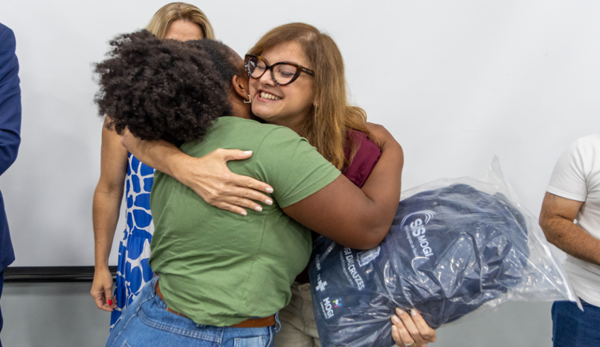 Após a apresentação, Mara e Téo entregaram os novos uniformes a 17 ACSs, representando os 151 que atuam em 17 Unidades de Saúde da Família (USFs). Além de agradecer a toda a equipe de Saúde e ao apoio da Câmara (representada pelo presidente José Francimário, o Farofa) e prefeita fez questão de elogiar Cusatis, que já foi secretário municipal de Saúde e tem ampla formação e especialização em gestão de saúde. “O Téo, além de um grande gestor e que ama o que faz, é um apaixonado por saúde. Eu aprendi com ele que quem tem dor tem pressa. E juntos estamos construindo uma nova saúde para Mogi. Temos um longo caminho pela frente, mas estamos dando passos largos, com a ajuda de todos vocês”, disse Mara, que, ao final, pediu para todos se levantarem e darem as mãos: “Não há força maior que a união”.