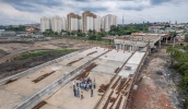 Trecho fundamental para a mobilidade de Cezar de Souza, o viaduto sobre a linha férrea que ligará a nova via à avenida Dante Jordão Stoppa teve concluído os trabalhos de lançamento das vigas, iniciado em setembro. Agora, a empresa responsável faz a concretagem da laje que receberá a passagem dos veículos.