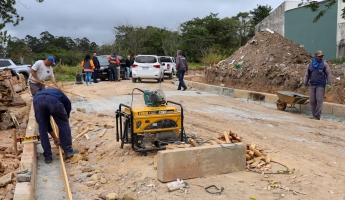 Os trabalhos na estrada Rikio Suenaga foram iniciados na última semana. No momento, as equipes estão realizando a movimentação de terra e a implantação de guias e sarjetas no local.