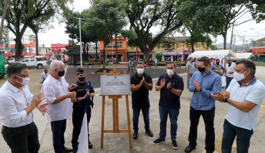 O prefeito Marcus Melo entregou nesta quinta-feira (17/12) as obras de revitalização das Praças Oswaldo Cruz, Sacadura Cabral e Diego Leme Chavedar, que fazem parte do projeto de revitalização urbanística da região central, integrado ao Complexo Viário Jornalista Tirreno Da San Biágio. Iniciado em janeiro de 2019, o trabalho tem investimento de R$ 3,9 milhões e foi realizado pela construtora Fasul. Melo também inaugurou a base da Guarda Municipal instalada na Praça Oswaldo Cruz.